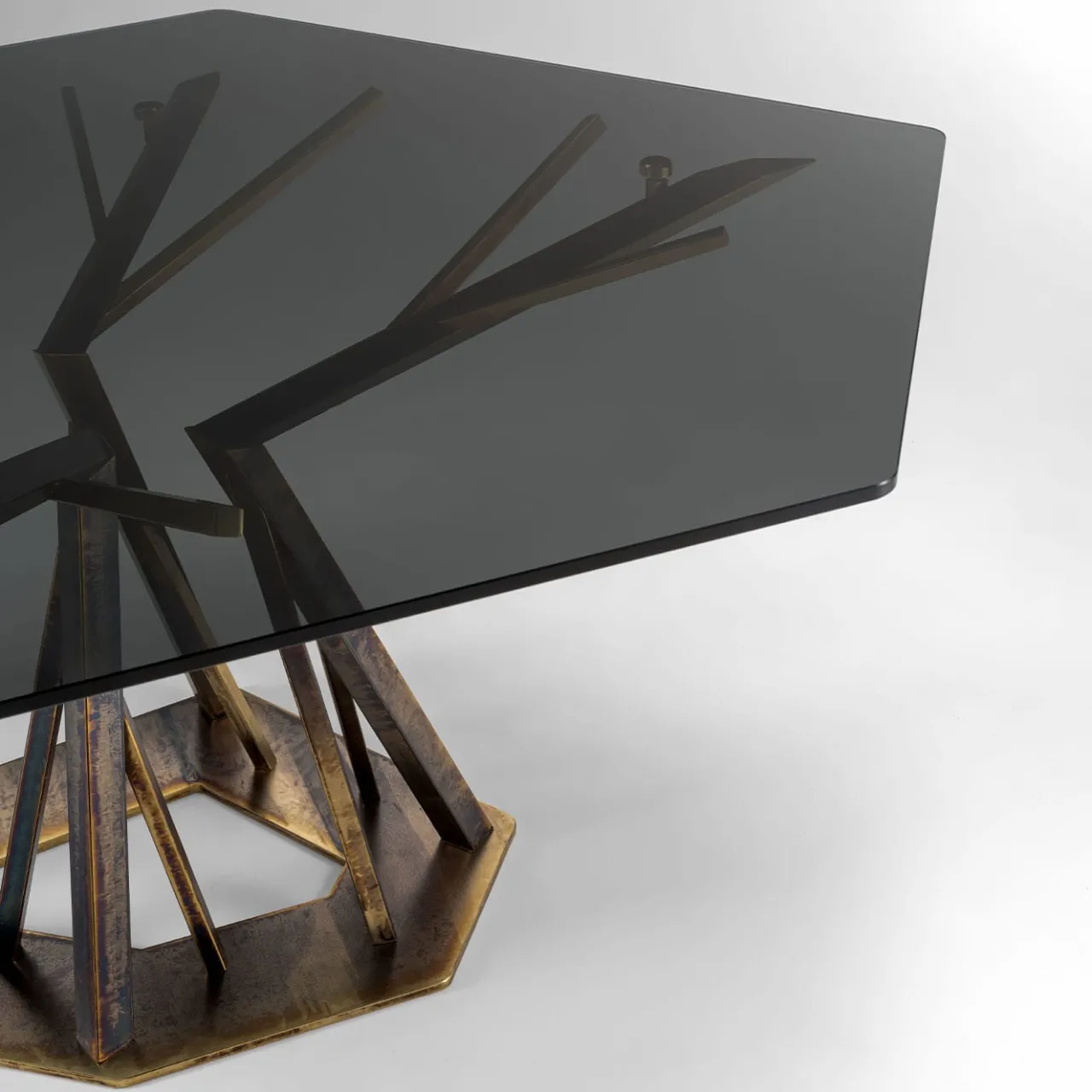 Il tavolo da pranzo Acropora è caratterizzato da forme organiche con gambe semi-piegate, abbinate a distintive finiture metalliche in oro antico e a uno splendido piano in vetro color bronzo. Il design unico aggiunge eleganza e raffinatezza a qualsiasi spazio. Sono disponibili opzioni personalizzabili per soddisfare le vostre preferenze. Per ulteriori informazioni, contattare il Concierge.