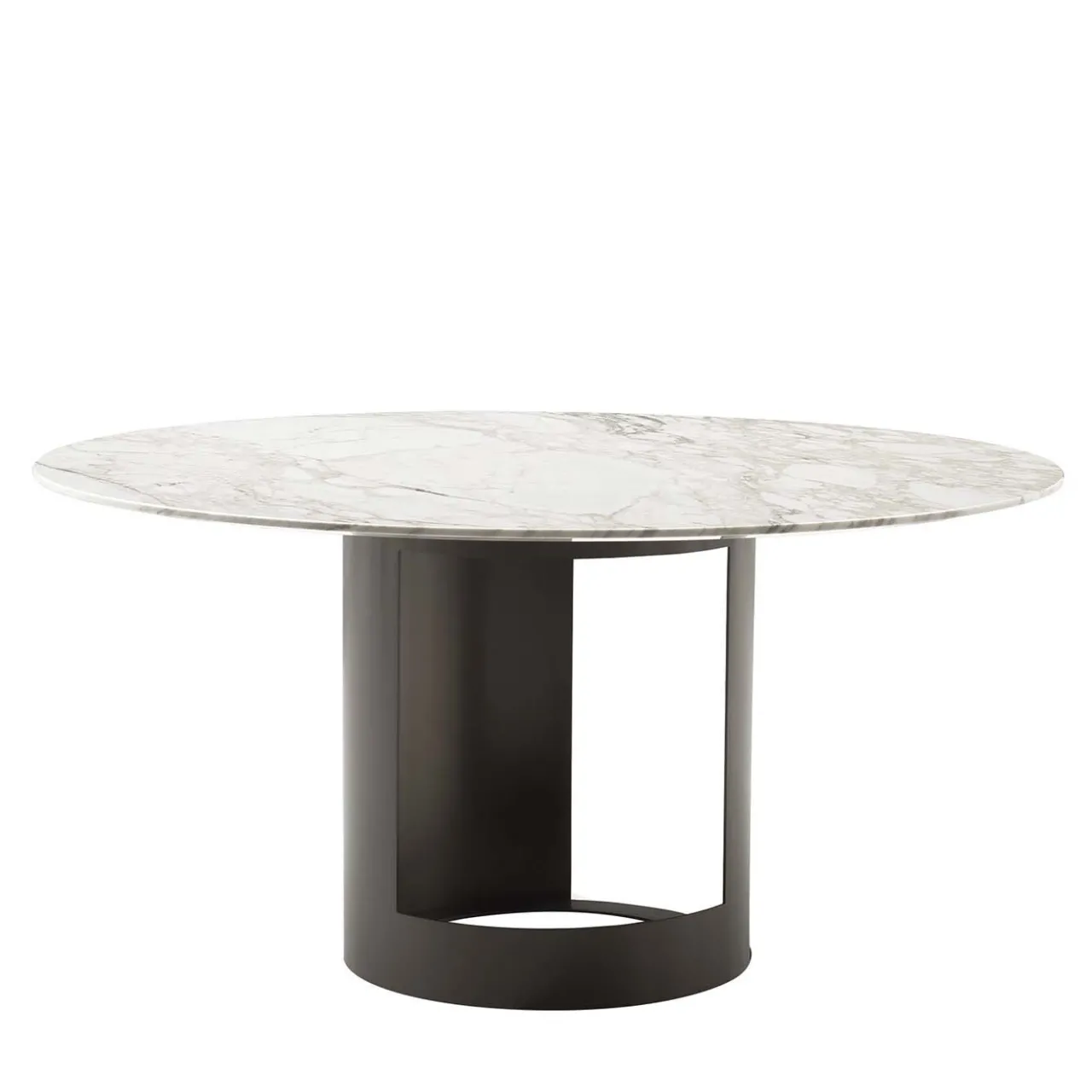 Parte della collezione Ci, questo tavolo da pranzo si distingue per la squisita cura dei dettagli e per l’accento raffinato e lussuoso che aggiungerà a qualsiasi arredamento moderno o contemporaneo. La base in metallo è rotonda e divisa in tre parti, una delle quali corre verticalmente verso il piano, mentre le altre sono aperte per dare un senso di leggerezza e un carattere audace al pezzo. Il piano è una splendida lastra smussata di Calacatta oro con finitura lucida. Disponibile anche nei colori Brown Emperador, Stardust, Brown Damasco e con finitura opaca, questo piano è estremamente leggero e opulento.
