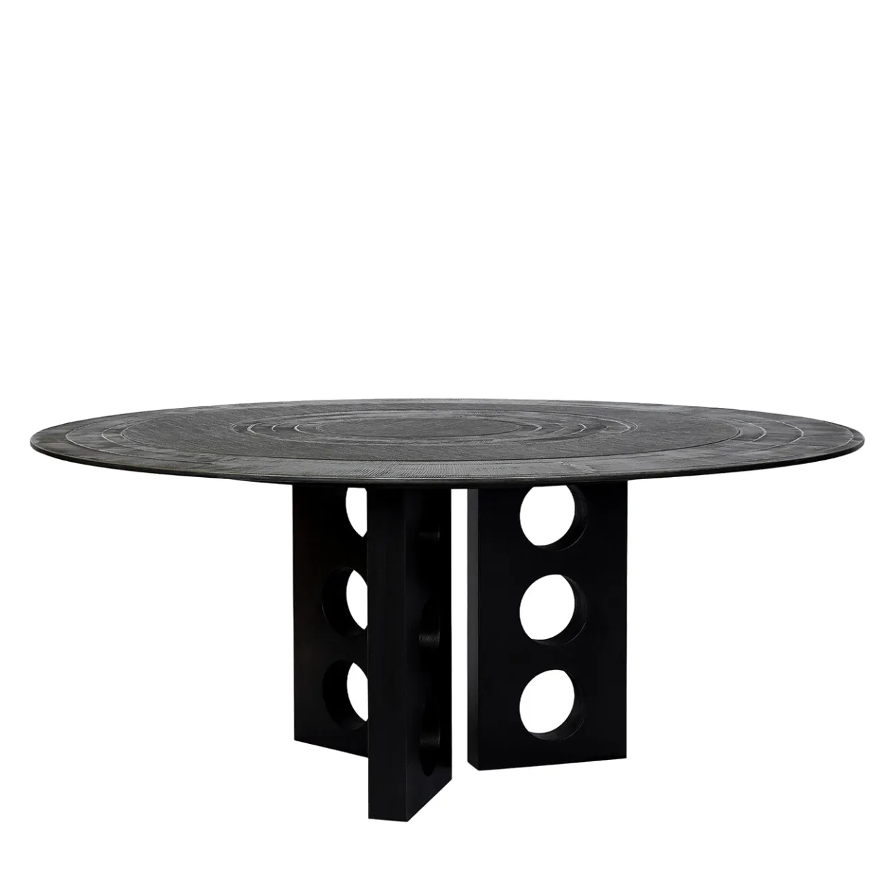 Questo tavolo si distingue per la sua base scultorea in legno, caratterizzata da ritagli geometrici e rifinita in nero. Il piano è impreziosito da una texture bronzata applicata su un delicato tessuto nero, creando un raffinato contrasto visivo e un ricco effetto tattile. Il design, che unisce minimalismo moderno e dettagli artistici, lo rende ideale per ambienti dining contemporanei. Per ulteriori informazioni e opzioni di personalizzazione, consultare il Concierge.