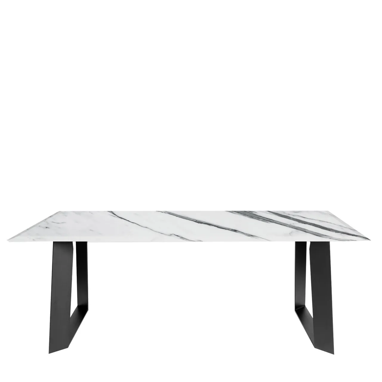 Il design eccezionalmente elegante di questo tavolo da pranzo rivela un’impeccabile maestria artigianale e il fascino intrinseco del pregiato marmo di Carrara. Realizzato minuziosamente a mano, presenta una base in ferro laccato grigio composta da due elementi scolpiti di chiara ispirazione geometrica che sorreggono un piano rettangolare in marmo di Carrara caratterizzato da venature uniche e seducenti. Questo pezzo è disponibile nelle finiture metalliche oro o grigio e in altri tipi di marmo su richiesta al Concierge.