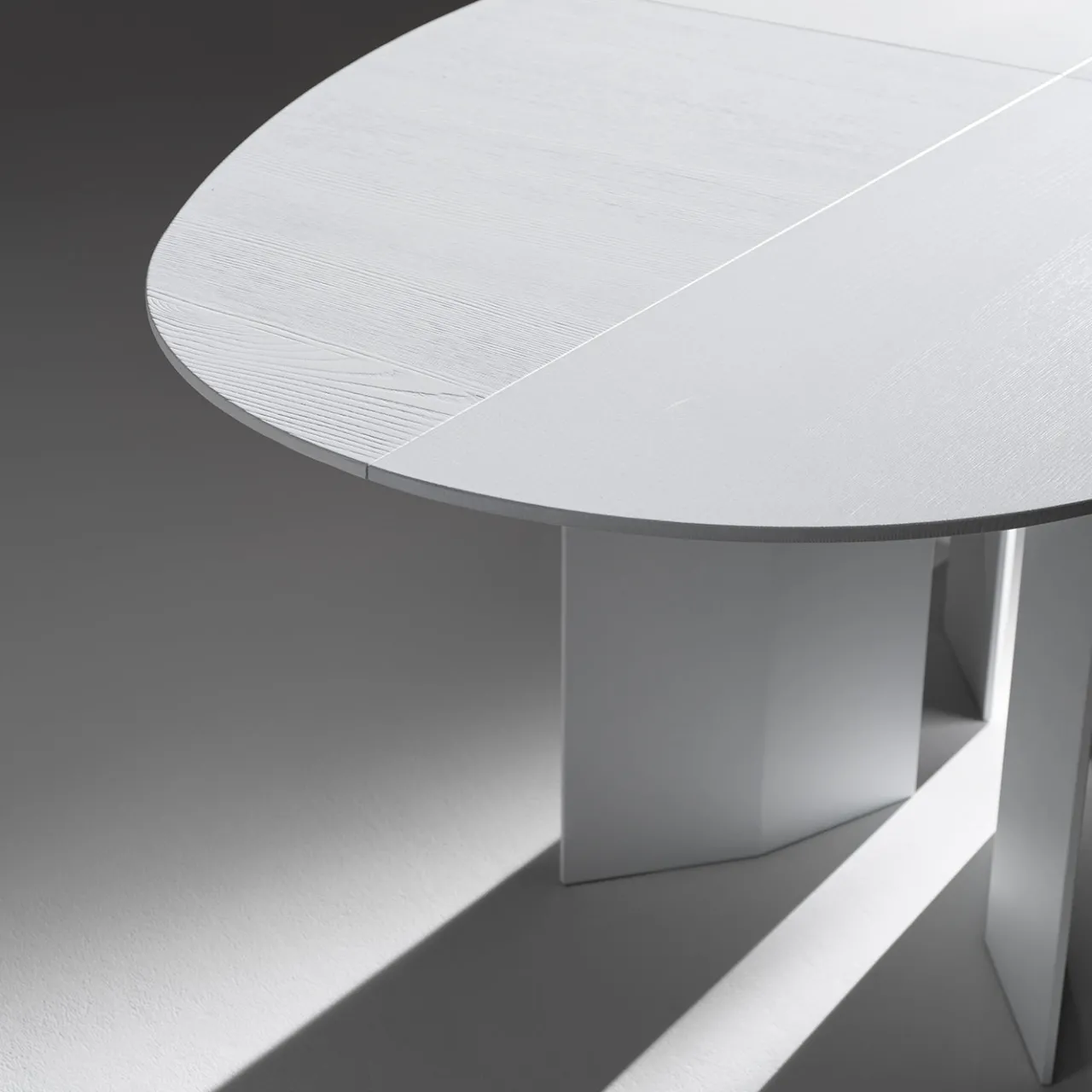 Tavolo da pranzo dallo stile raffinato, con piano ovale rifinito in laccato opaco bianco dalla texture liscia. È sostenuto da quattro gambe rettangolari, disposte in modo da garantire stabilità e una silhouette pulita e contemporanea. Disponibile anche nelle versioni in nero e frassino termotrattato, questo tavolo unisce eleganza minimalista e funzionalità versatile, adattandosi con stile a diversi ambienti dining. Per maggiori informazioni, contattare il concierge.