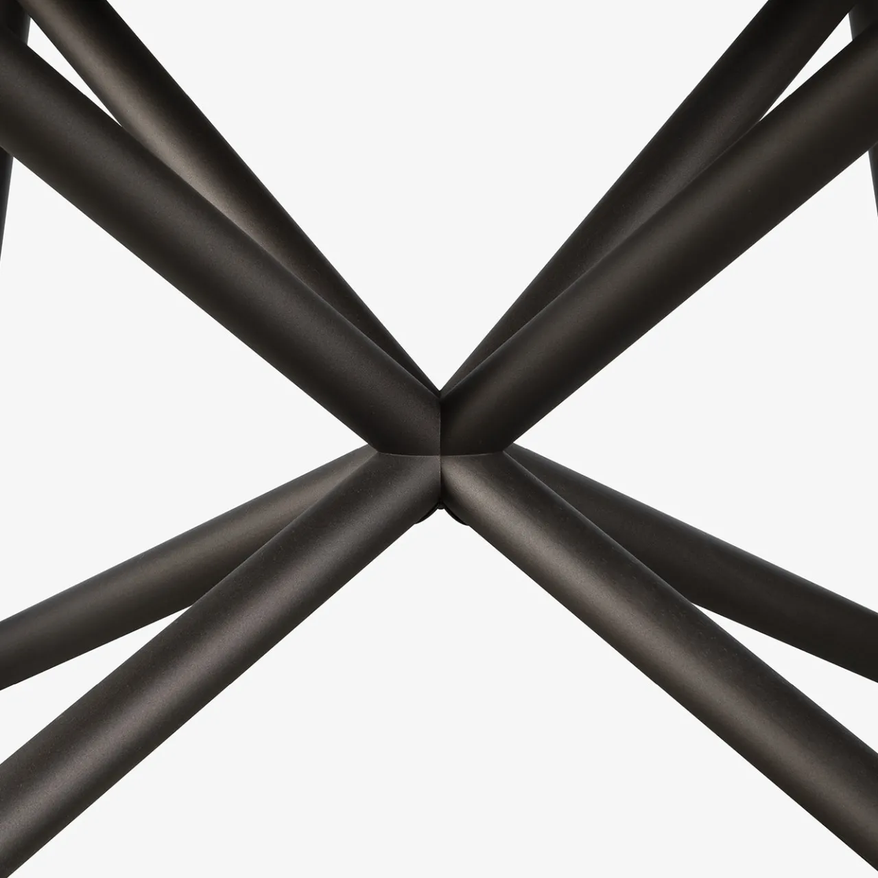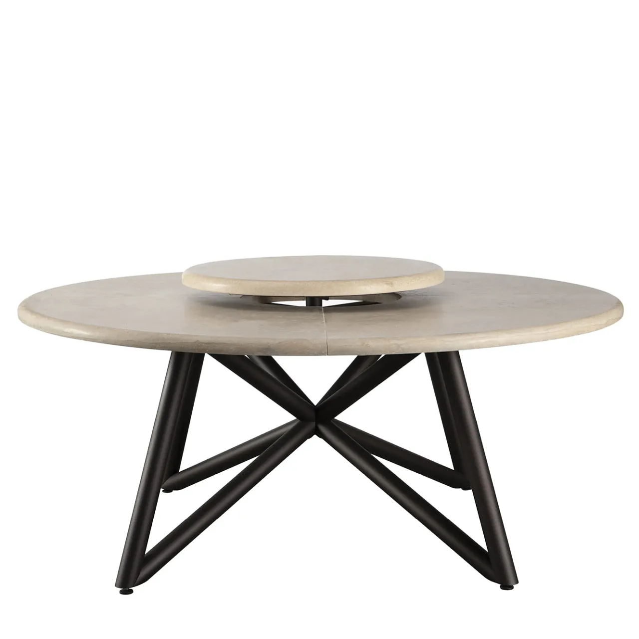 Il tavolo Hermu presenta un distintivo piano rotondo in pietra peperino naturale, composto da quattro segmenti tagliati con precisione uniti da un supporto metallico centrale. Al centro, un piano girevole rialzato più piccolo (⌀ 80 cm) aggiunge funzionalità e dinamismo. La superficie in pietra è levigata e trattata con finiture resistenti a macchie e pioggia, mentre i bordi arrotondati evidenziano la sua raffinata lavorazione artigianale. La base scultorea è realizzata in tubi in acciaio galvanizzato a spruzzo che si intrecciano, con una finitura in marrone scuro e rivestita con polveri termoindurenti per uso esterno, per garantire durata. Un equilibrio sorprendente di robusta materialità ed eleganza contemporanea. Questo modello è disponibile anche in altre dimensioni e materiali nel catalogo Artemest. Si prega di contattare il Concierge per ulteriori informazioni.