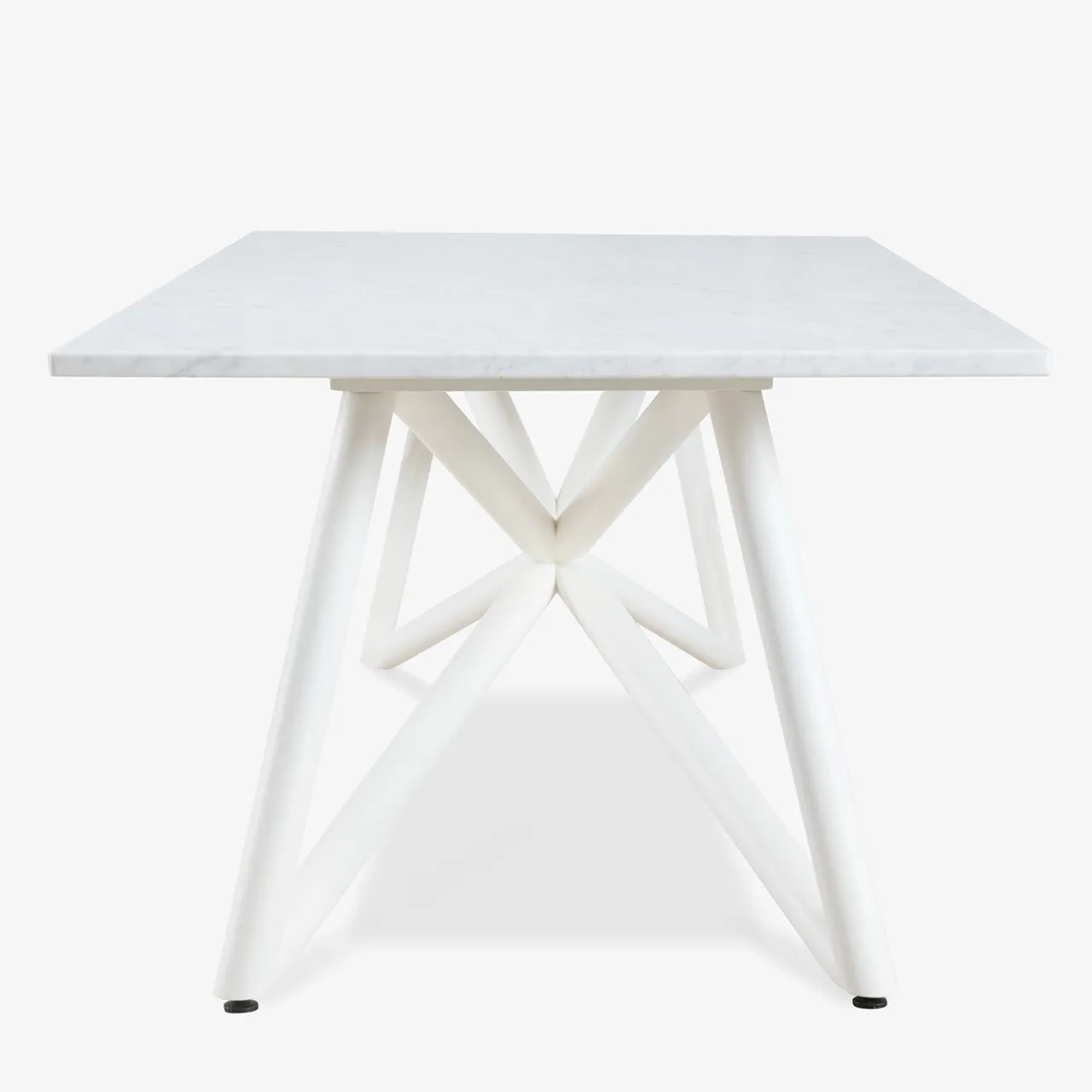 Tavolo da pranzo esterno rettangolare Larte 260 in marmo bianco carrara e acciaio bianco*Veltha Outdoor Stone Design Outlet