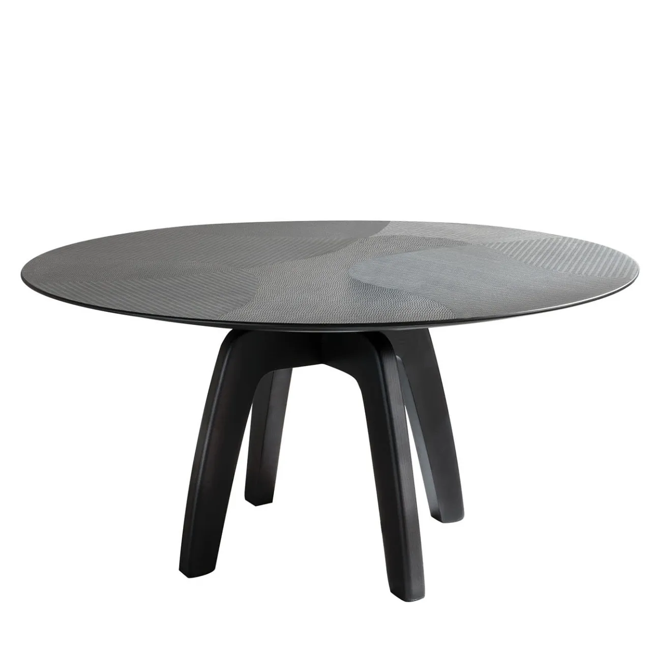Un tavolo da pranzo rotondo elegante e contemporaneo con una struttura in legno massiccio tinto di nero. Il piano del tavolo è meticolosamente decorato con un raffinato intarsio in legno, che aggiunge profondità e consistenza alla sua forma minimalista. Con gambe in legno massiccio, questo pezzo è progettato per essere una dichiarazione di eleganza negli interni moderni. Disponibile in più dimensioni, può essere personalizzato per adattarsi alle preferenze individuali. Contattate il Concierge per esplorare le opzioni.