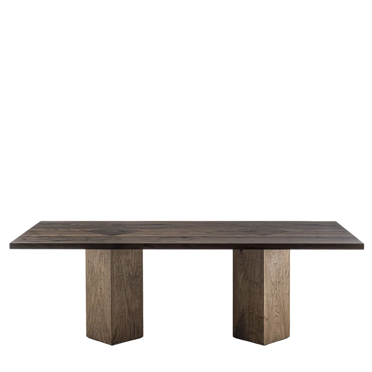 Il tavolo da pranzo Junior B presenta un piano realizzato con doghe di legno massello incollate, valorizzate da nodi naturali e una finitura a olio. Il design si distingue per i particolari delle gambe, che si estendono visibilmente al di sopra del piano e sono ottenute da sezioni di tronco ruotate di 45°. Il tavolo coniuga un’estetica solida e al tempo stesso raffinata. Progettato da Authentic Design.