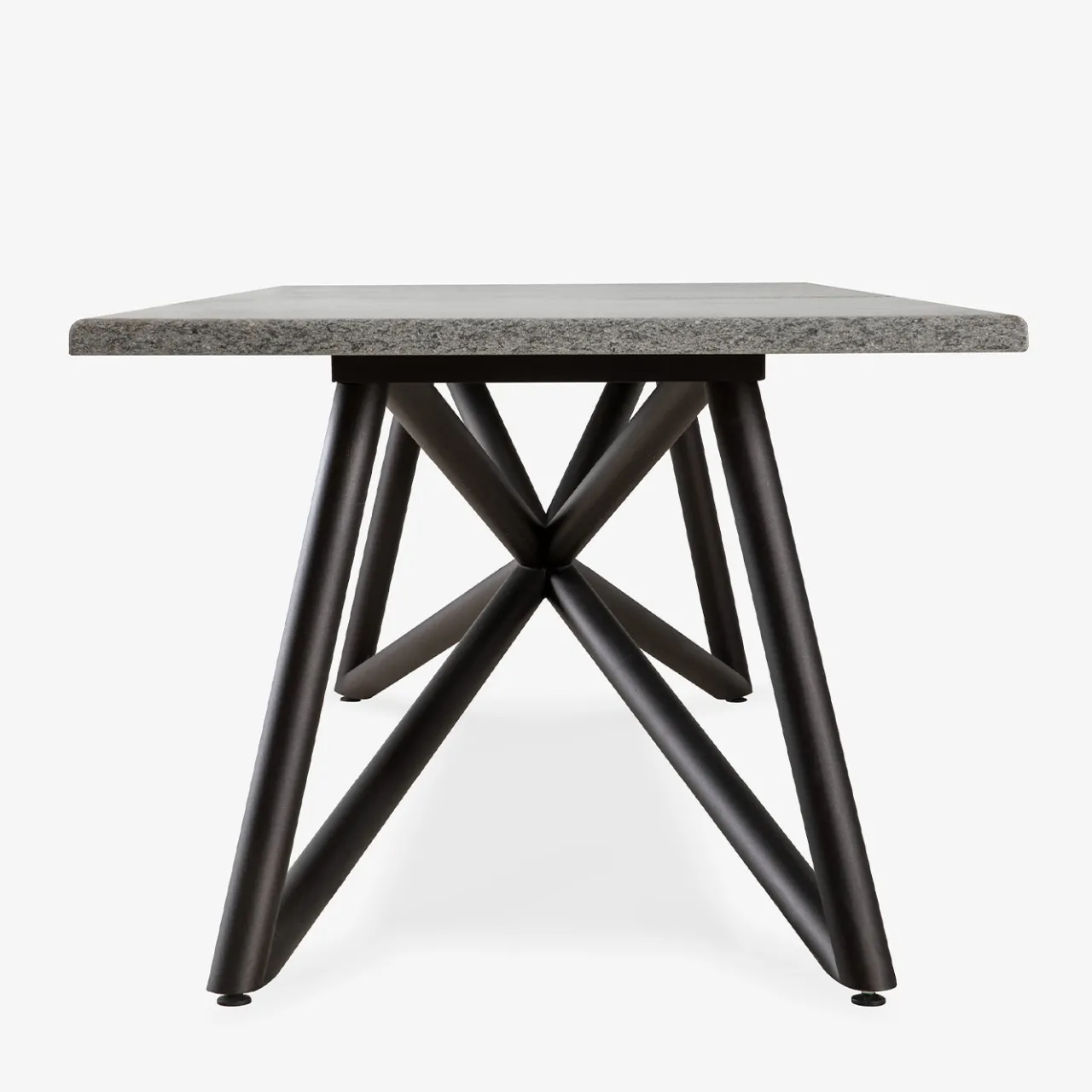 Tavolo da pranzo outdoor rettangolare in peperino grigio e acciaio marrone Larte 200*Veltha Outdoor Stone Design Discount