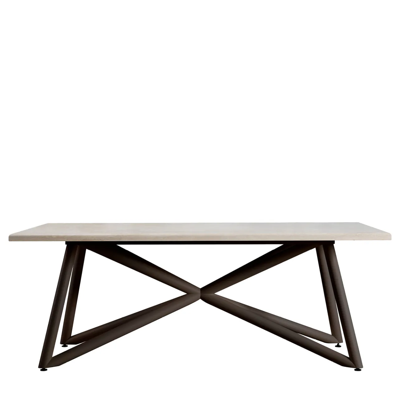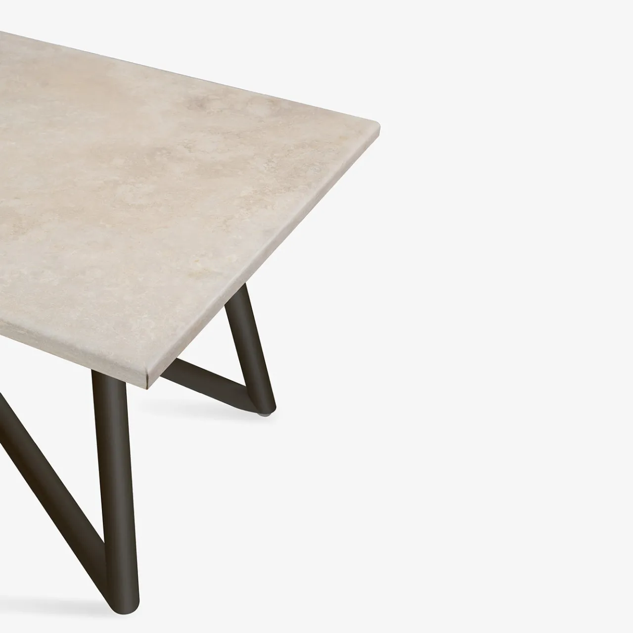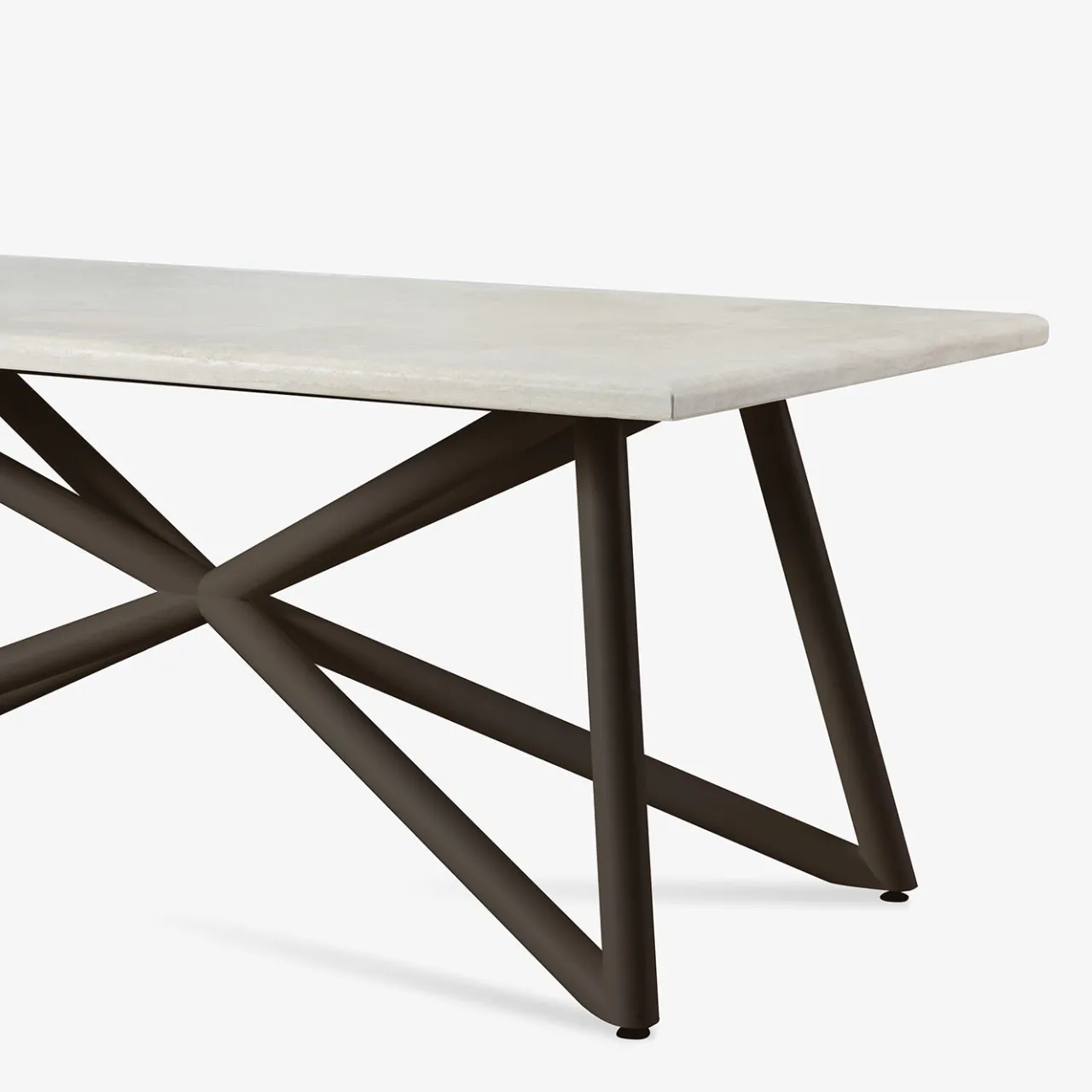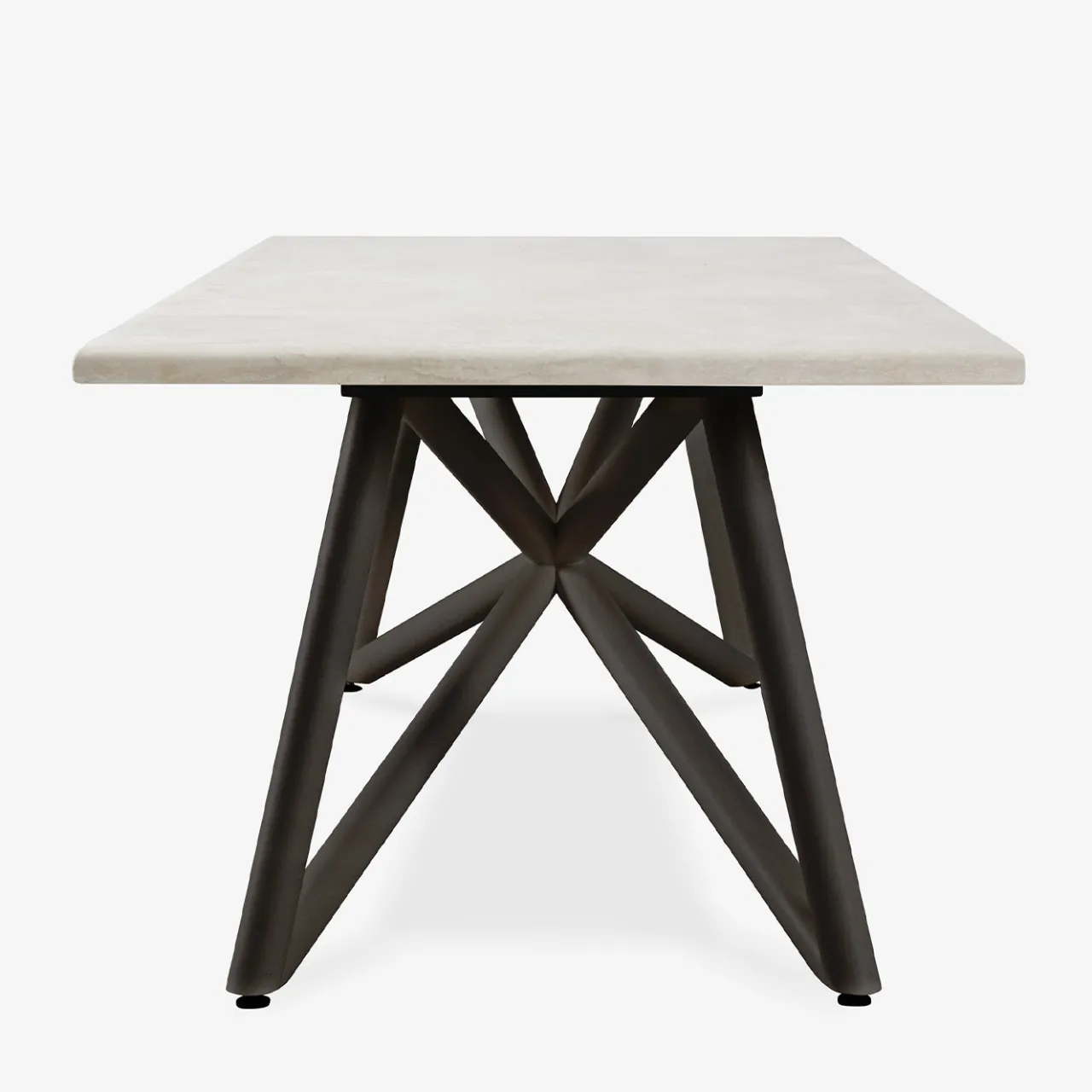 Tavolo da pranzo outdoor rettangolare in travertino e acciaio marrone Larte 200*Veltha Outdoor Stone Design Best
