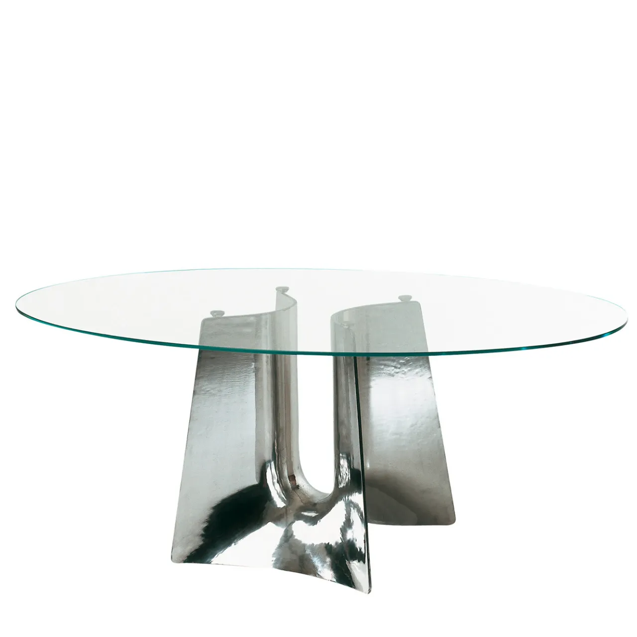Tavolo da pranzo ovale in vetro Bentz di Jeff Miller*Baleri Italia Sale