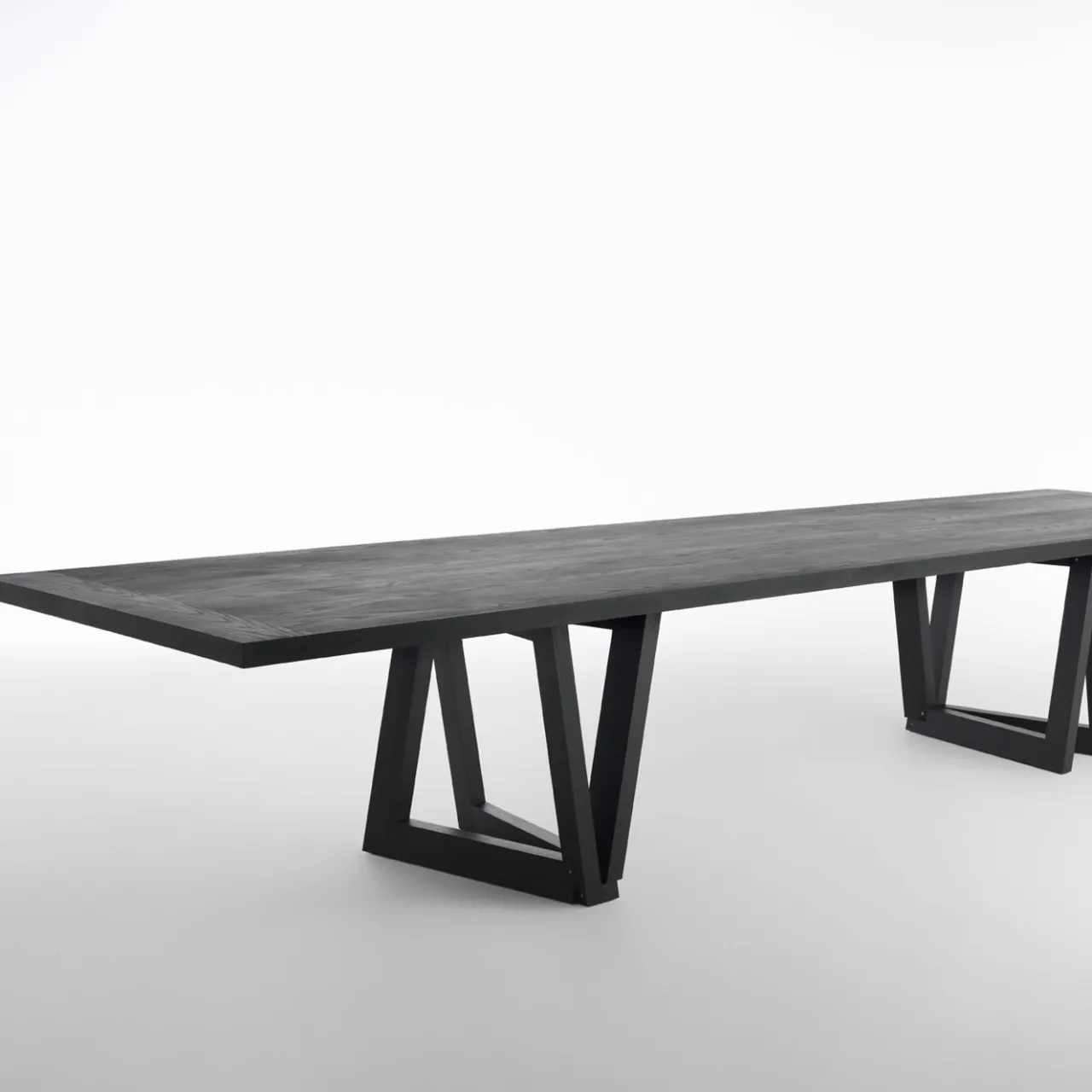 Opera d’arte scultorea con un gioco di forme geometriche e prospettive, questo tavolo da pranzo è un pezzo unico e distintivo di arredamento funzionale. Interamente realizzato in legno massiccio di frassino con finitura tinta moka e rinforzato internamente con supporti metallici longitudinali, è un tavolo ampio e funzionale dall’aspetto sorprendente, squisitamente progettato da Dror. Le dimensioni del piano possono essere personalizzate su richiesta, contattando il Concierge per i dettagli.