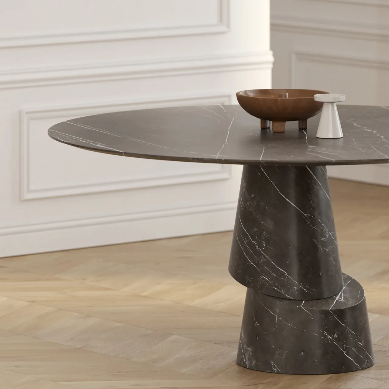 Tavolo da pranzo rotondo Slice in pietra grafite*Etamorph Outlet