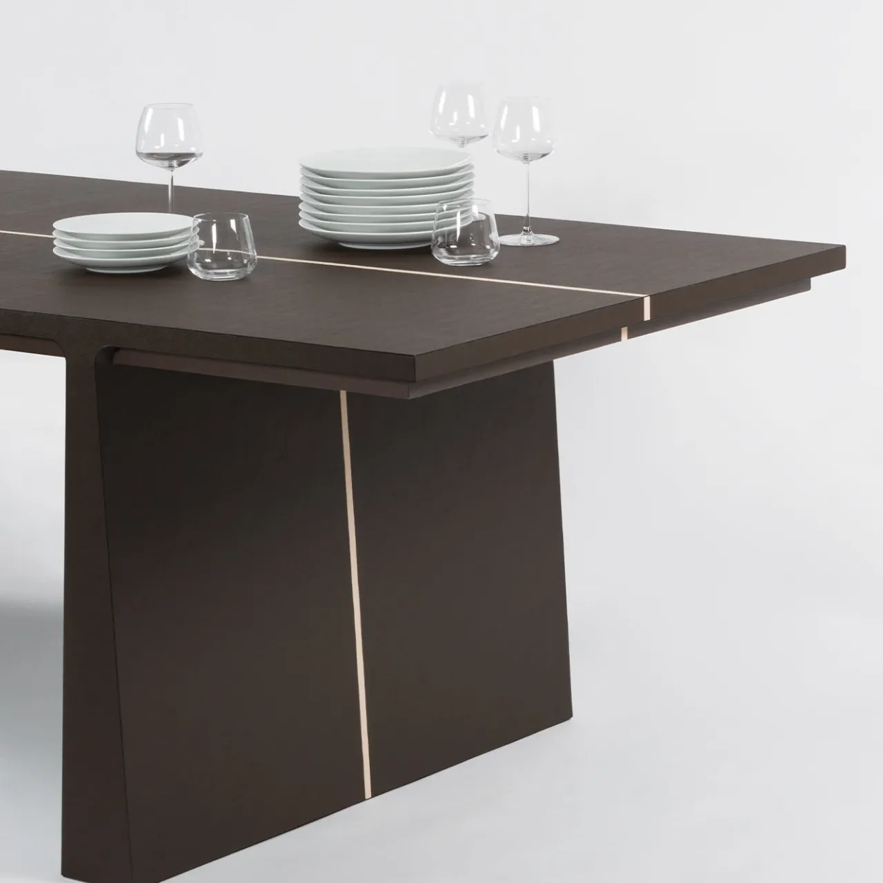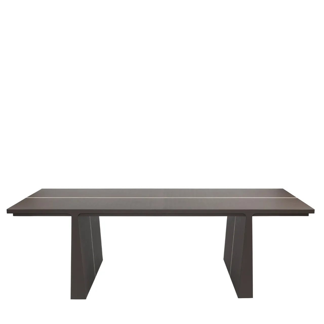 Questo splendido tavolo da pranzo/scrivania, chiamato La Linea, fa parte di una collezione disegnata da Stéphane Parmentier e ispirata ai dipinti astratti di Barnett Newman. La semplice silhouette geometrica è interamente rivestita in pelle nera, segnata da una sottile linea bianca che corre ininterrotta lungo il centro dell’imponente piano rettangolare e scende fino alle gambe leggermente svasate.