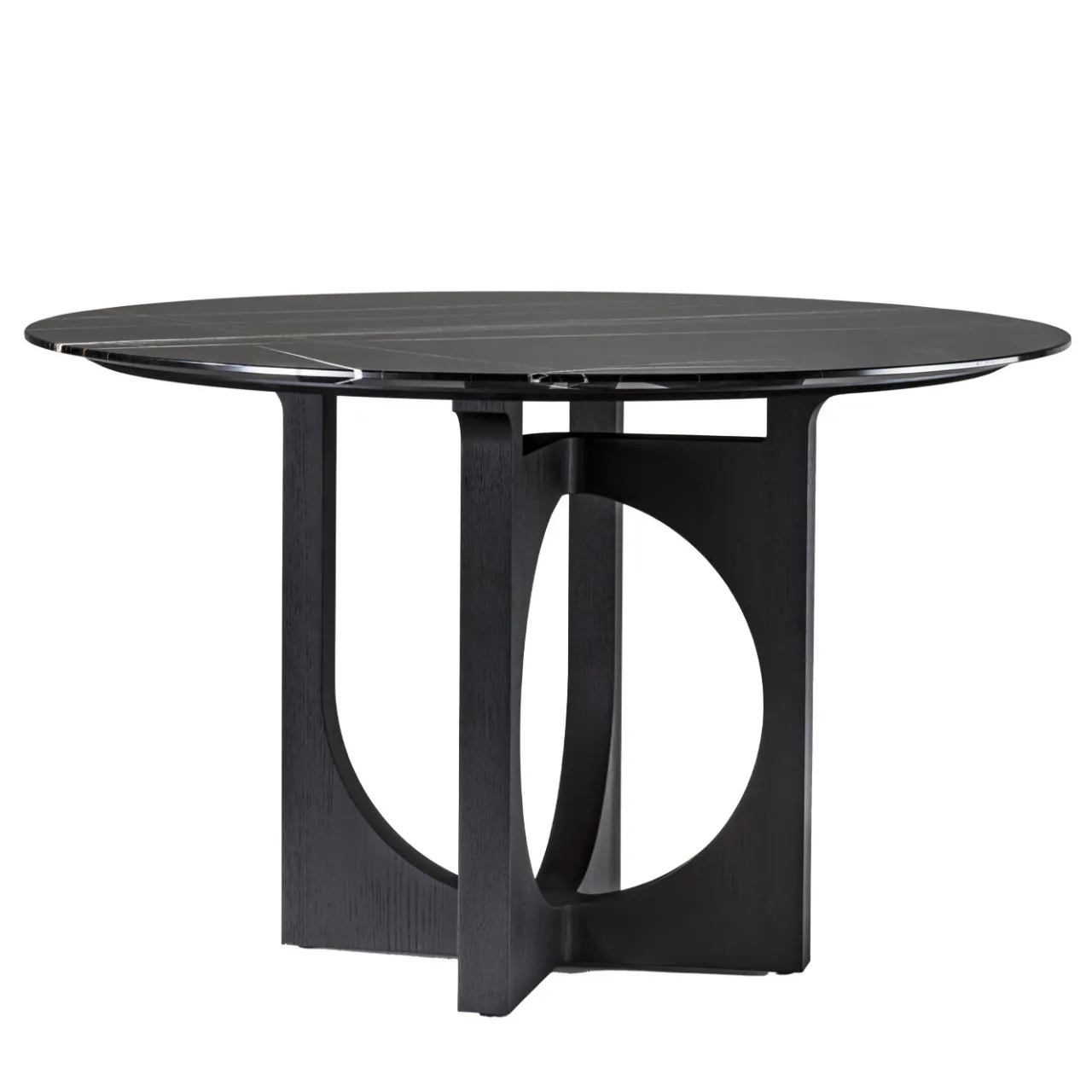 Un accattivante gioco di forme piene e vuote, questo tavolo da pranzo è un pezzo unico di design la cui base asimmetrica e tridimensionale è realizzata in legno massiccio ed è composta da due pannelli incisi dall’accattivante fascino contemporaneo. Il piano rotondo è realizzato in marmo e aggiunge un accento sofisticato a questo pezzo notevole.