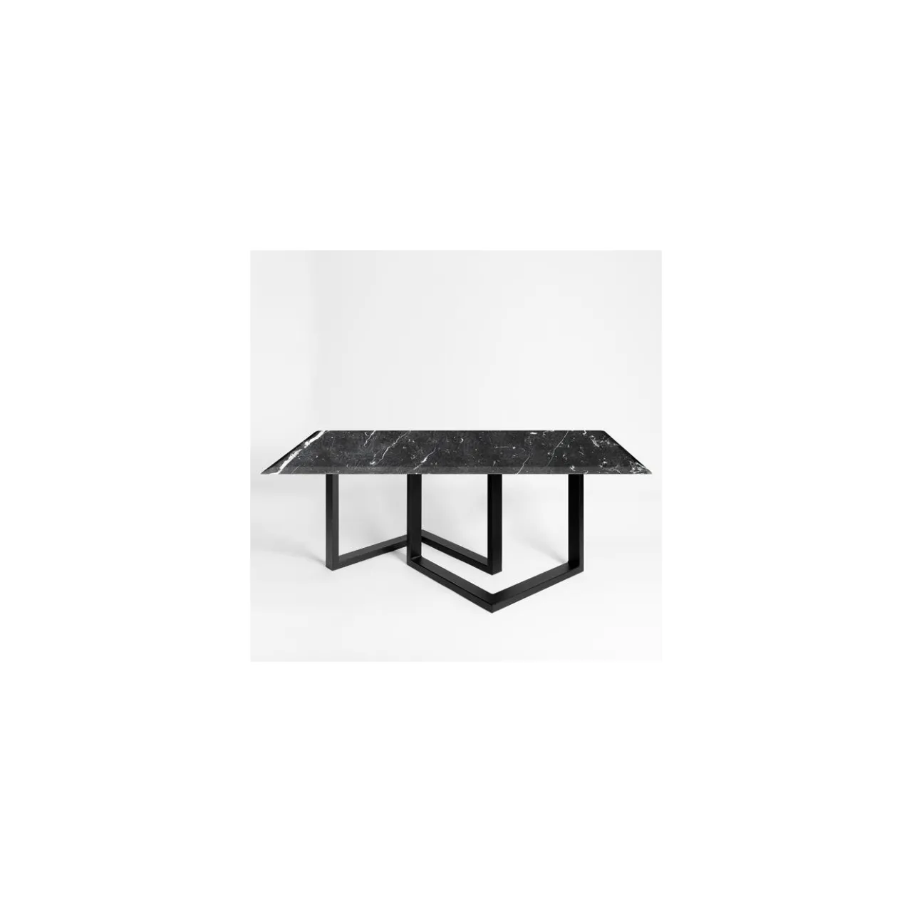 Con le sue venature bianche brillanti che creano un affascinante contrasto con l’elegante tonalità nera che prevale in questo design, questo tavolo da pranzo sarà un’aggiunta audace e maestosa in un interno contemporaneo. Poggiato su una struttura altamente geometrica realizzata a mano in ferro laccato nero, il piano rettangolare pulito è realizzato in marmo nero Marquinia ed è disponibile in un’ampia gamma di altri tipi di marmo. Disponibile anche con base laccata oro o grigia.