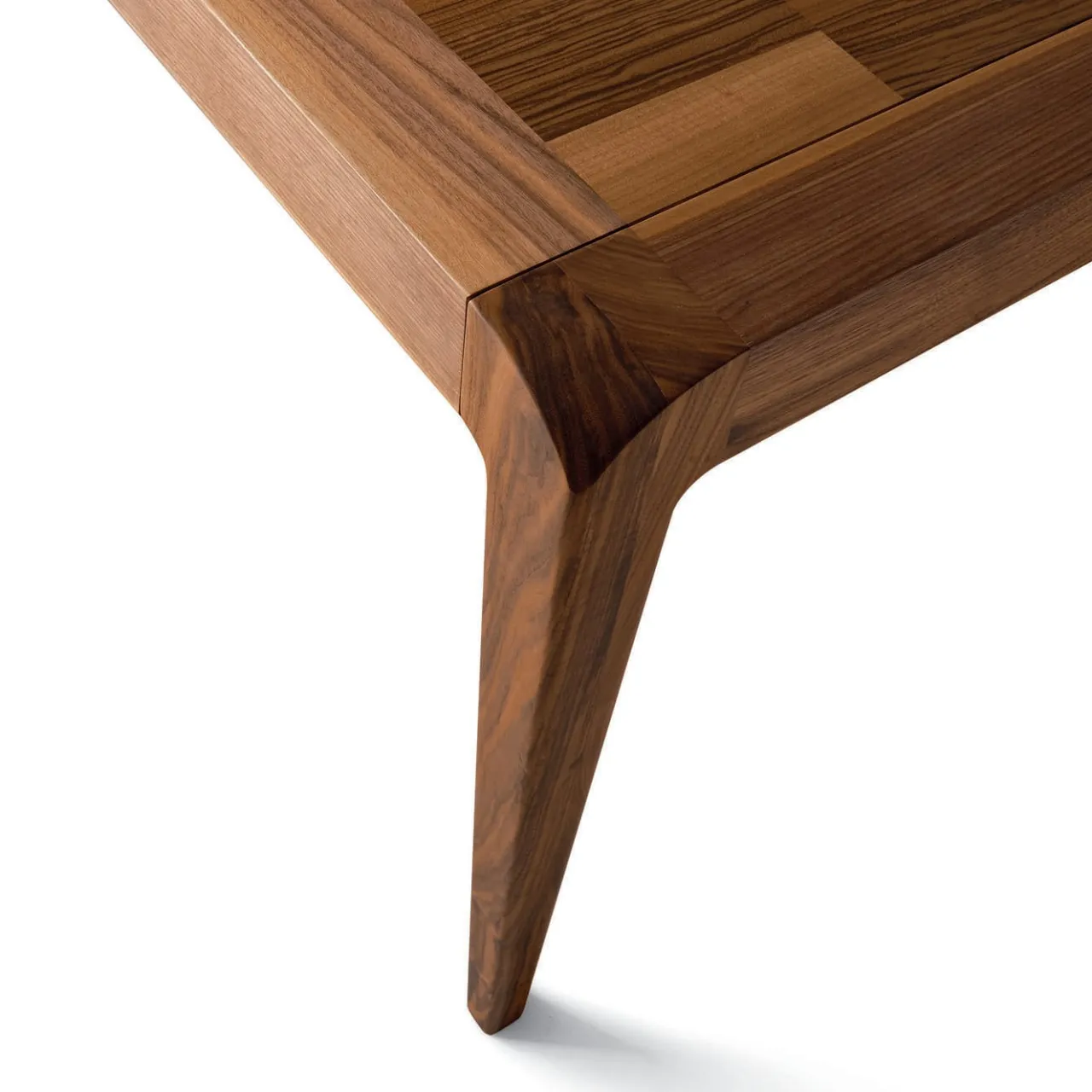Il tavolo allungabile Sentiero in legno massello è l’espressione del design contemporaneo e dell’alta qualità artigianale italiana. Di forma rettangolare, presenta struttura e gambe in pregiato grigio o noce naturale con intarsio e finitura legno. La possibilità di essere allungato tramite fasce sottopiano garantisce versatilità e praticità. Un tavolo essenziale, elegante e informale.
