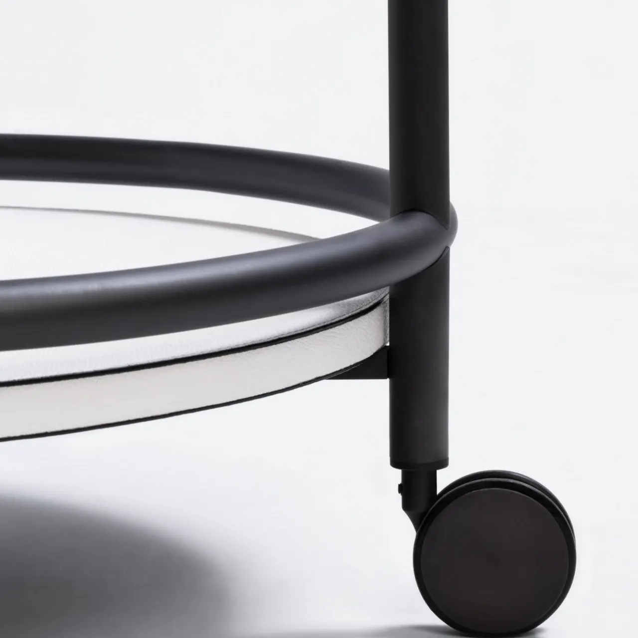 Eleganza e versatilità sono le qualità distintive di questo tavolo trolley rotondo. La struttura in legno è rivestita in pelle con una combinazione di colori a contrasto per un effetto di grande impatto: i due vassoi rotondi sono rivestiti in pelle bianca, mentre la struttura portante è evidenziata da pelle color grigio antracite. L’estetica sofisticata che ne deriva farà di questo tavolo un’aggiunta preziosa a un interno moderno, dove potrà servire cibi e bevande o esporre piante e oggetti da collezione in qualsiasi stanza della casa.