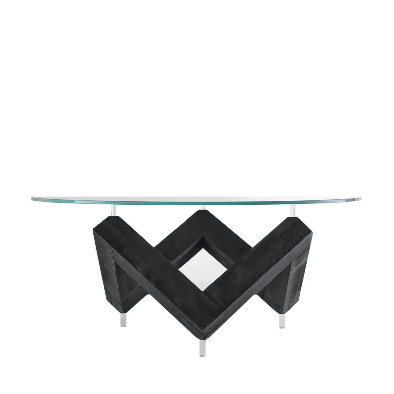 Questo tavolo di grande impatto farà la sua figura in qualsiasi ambiente. L’esperienza culinaria sarà arricchita dalla visione della suggestiva base a W in legno di larice attraverso il piano rotondo in vetro temperato. La base ha una finitura spazzolata e sembra quasi fluttuare dal suolo, mentre il piano sembra fluttuare sopra la base grazie ai componenti trasparenti di collegamento. Questo sofisticato mobile creerà una sensazione di lusso in casa.