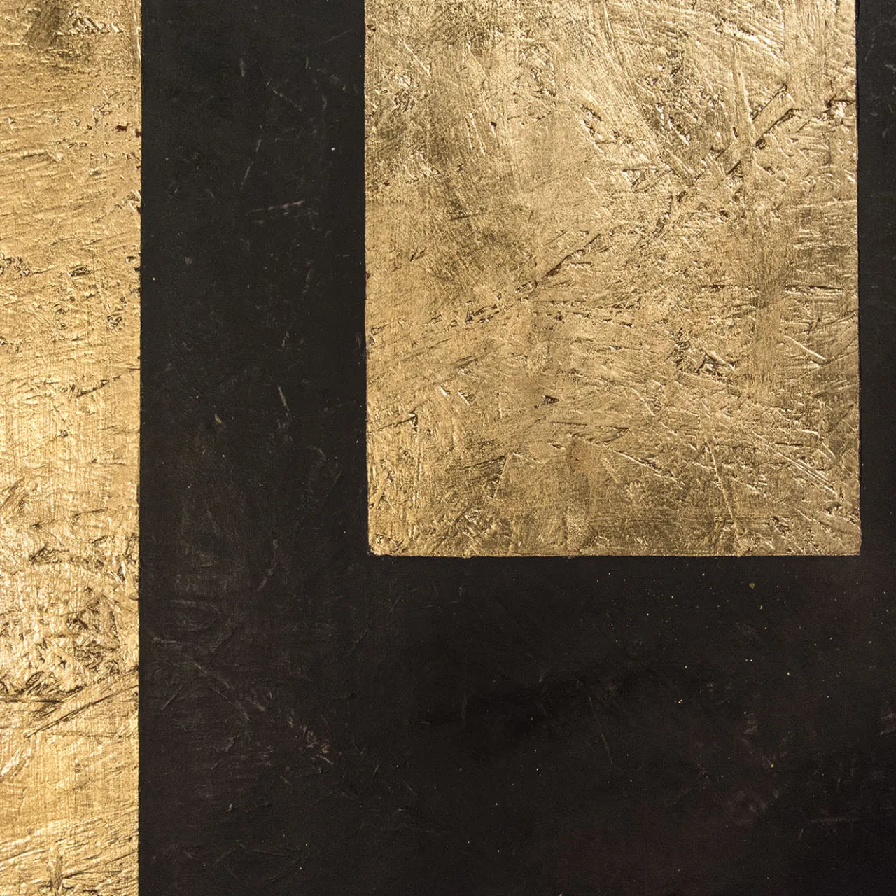 Una testiera in legno di grande impatto, con una cornice esterna in legno di abete tinto a mano di colore grigio scuro. Il pannello centrale in legno OSB, arricchito con pigmenti naturali e stucco, crea una superficie strutturata impreziosita da accenti di foglia d’oro applicati secondo le tecniche tradizionali della missione. Rifinito con una lucidatura a cera d’api e un’applicazione a spatola, questo pezzo fonde le antiche tecniche veneziane con l’estetica moderna per un design audace ed elegante.
