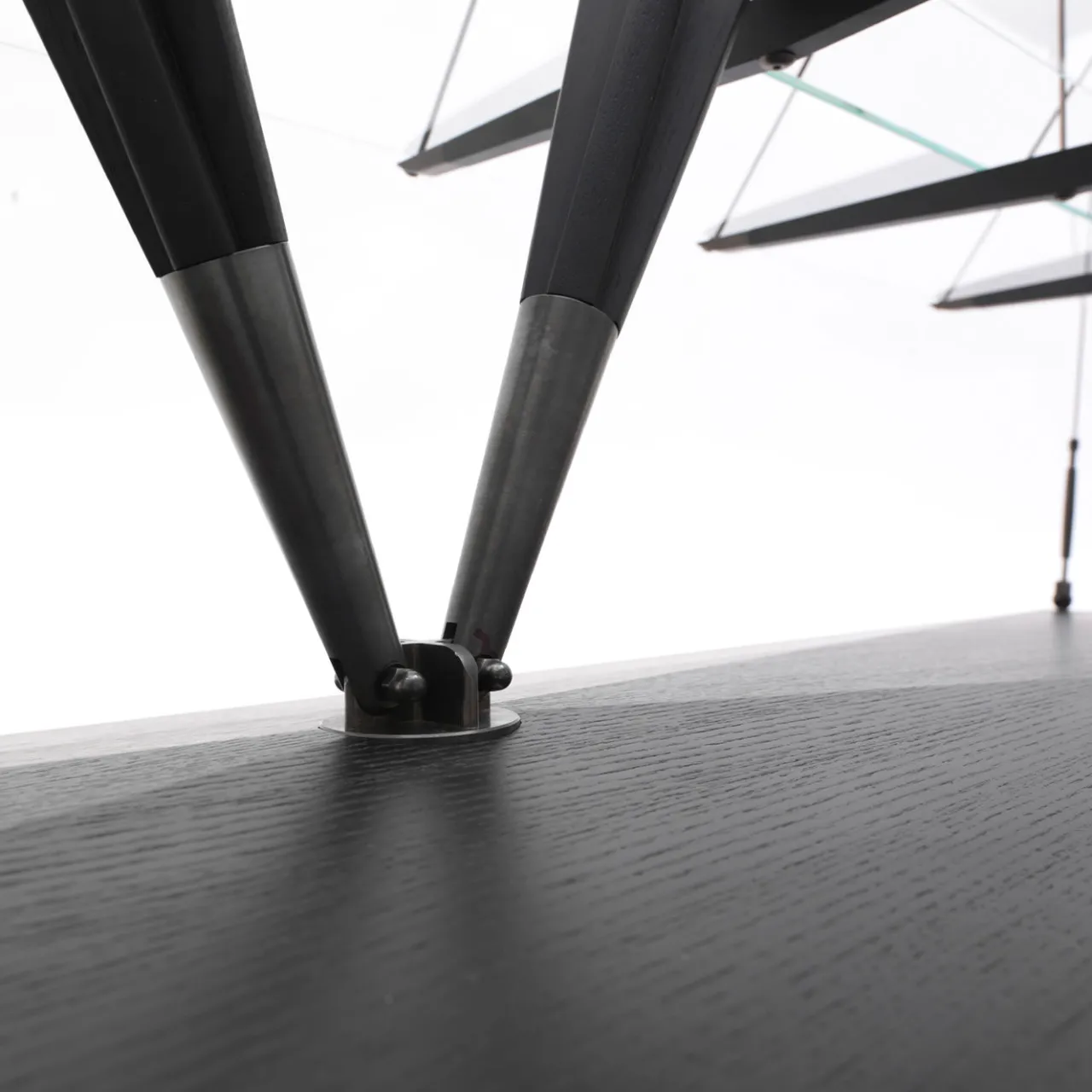 Veliero – Libreria con montanti e base in frassino tinto nero, ripiani in vetro temperato e stratificato, parti metalliche in ottone con finitura cromata satinata. Sfidando le leggi della fisica, andando oltre ciò che normalmente intendiamo per condizioni di equilibrio, questa libreria è a dir poco un manifesto delle capacità progettuali e costruttive di Cassina. Dopo un lungo periodo di ricerca e sviluppo, abilmente assistito da tecnologie all’avanguardia, i designer dell’azienda hanno creato un prototipo di produzione del pezzo originale del 1940 che l’architetto Franco Albini realizzò come pezzo unico per la sua casa di Milano. Rispettando l’autentico concetto di fondo del progetto, con la sua irresistibile sensazione di sperimentazione e il suo aspetto sorprendentemente sobrio e lineare, il modello odierno conserva l’ideale minimale dell’originale: una sensazione di aria e di luce che fa sì che i libri e gli oggetti sembrino fluttuare liberamente. Cassina restituisce così al mondo contemporaneo del design uno dei suoi manufatti più emblematici, un pezzo che ha acquisito lo status di opera d’arte, magico oggi come allora. Ora è disponibile anche in un’esclusiva edizione limitata in legno di frassino tinto nero con tappi ed elementi metallici in acciaio inox.