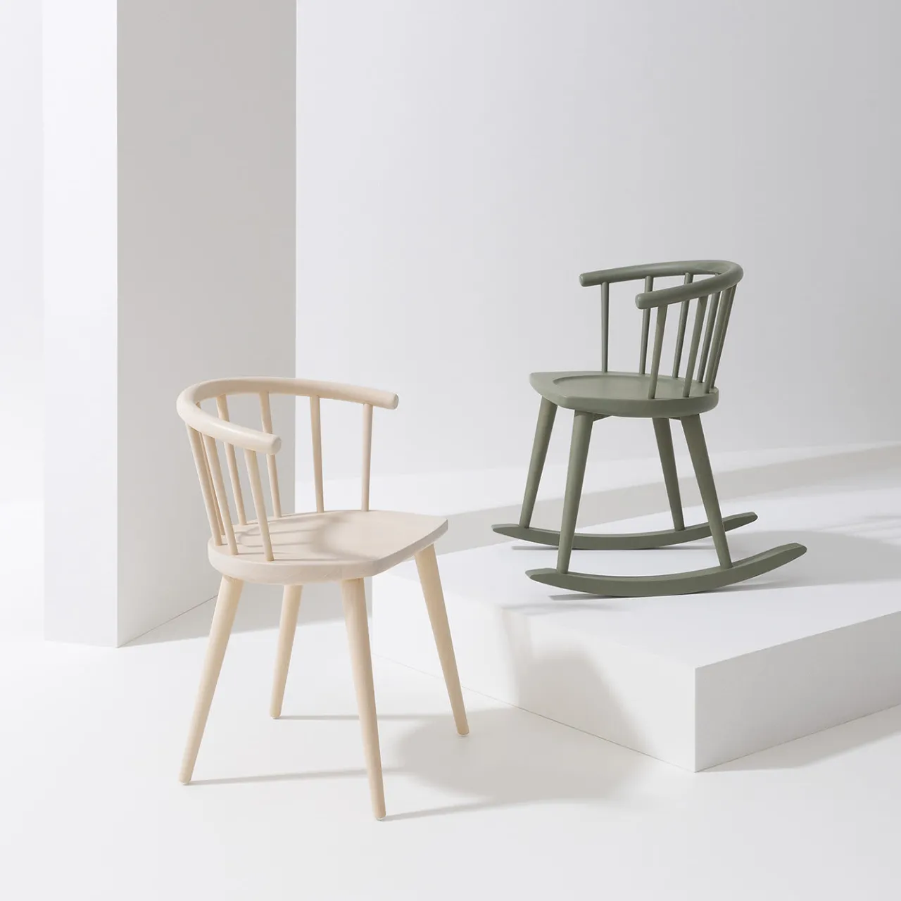 Evocando atmosfere spensierate, questo romantico design di Fabrizio Gallinaro sfoggia un profilo elegante ma rustico con questa sedia a dondolo in legno di faggio in una tonalità grigio cemento. La seduta, alta 44,5 cm, poggia su quattro gambe affusolate montate su due elementi curvi che permettono alla sedia di dondolare dolcemente. Bastoni verticali sormontati da una barra orizzontale profondamente curva formano l’avvolgente schienale.