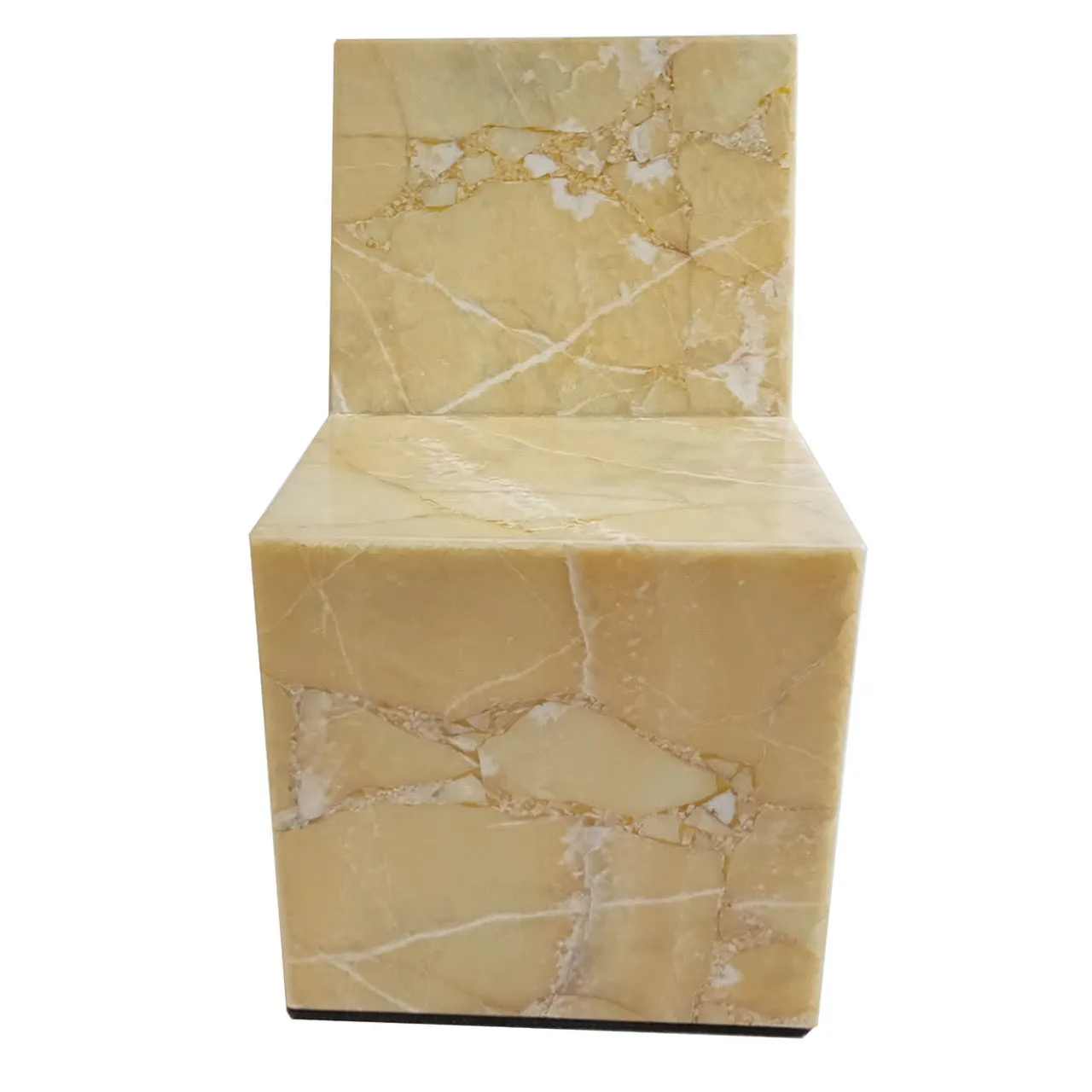 Il profilo scolpito di questa sedia le conferisce un’allure disadorna, perfetta per completare interni esclusivi o contesti esterni come terrazze o giardini pensili. La scocca, ingannevolmente pesante, è realizzata in marmo leggero che si fonde con lo strato di onice, consentendo un design elegante e una facile manipolazione. Altre finiture sono disponibili su richiesta, da richiedere al Concierge. Questo oggetto è attualmente esposto presso la Galleria Artemest di New York in occasione della mostra MARMO.